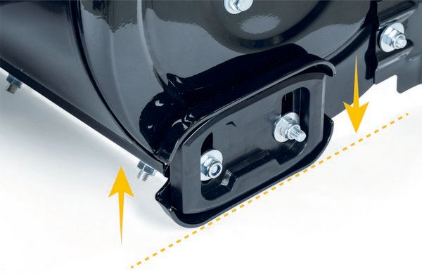 При помощи барашковых гаек оператор точно меняет положение дефлектора желоба. Это позволяет задавать желаемую высоту и дальность выброса снега и ускоряет работу на территории.