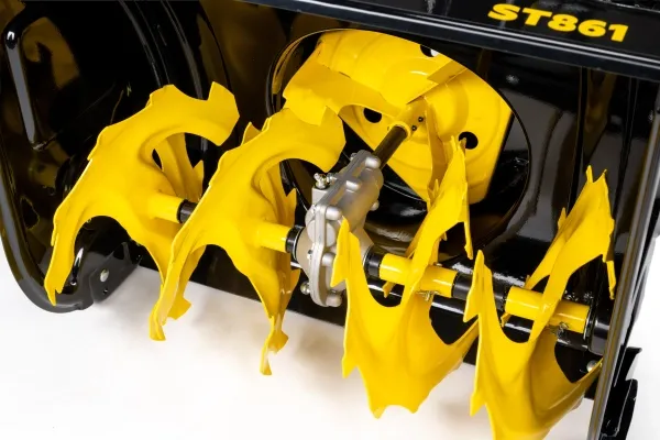 Стальные зубцы шнека специальной заострённой формы способны осилить самые плотные снежные пласты и ледяную корку, гарантируя мгновенное измельчение и бесперебойную подачу снега на крыльчатку для мощного выброса снега.