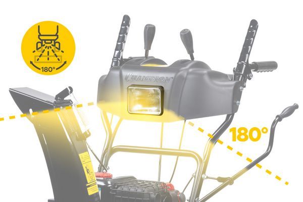 Фара на панели управления дает угол освещения 180 градусов, что позволяет видеть не только рабочую зону, но и зону выброса. Это особенно удобно в темное время суток.