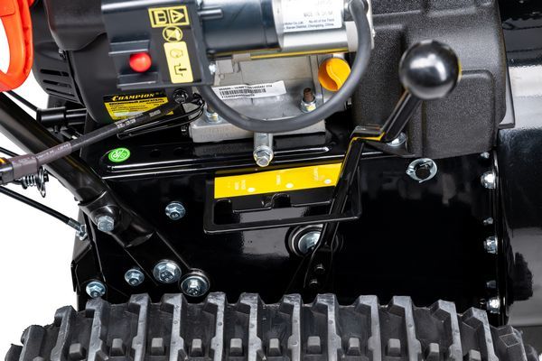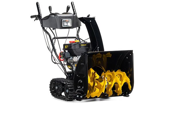 Гусеничный привод обеспечивает снегоуборщику максимальное сцепление и проходимость на рыхлом снегу, льду и склонах, равномерно распределяя вес машины для устойчивой работы без пробуксовки. Это достигается за счет большей площади соприкосновения с поверхностью по сравнению с колесными моделями.