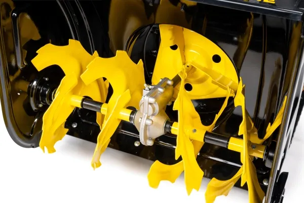 Стальные зубцы шнека специальной заострённой формы способны осилить самые плотные снежные пласты и ледяную корку, гарантируя мгновенное измельчение и бесперебойную подачу снега на крыльчатку для мощного выброса снега.